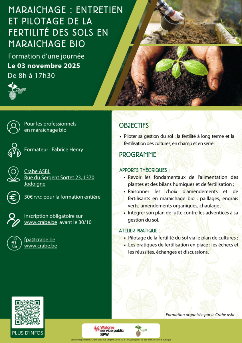 Pour toutes informations complémentaires, contactez-nous via fpa@crabe.be
